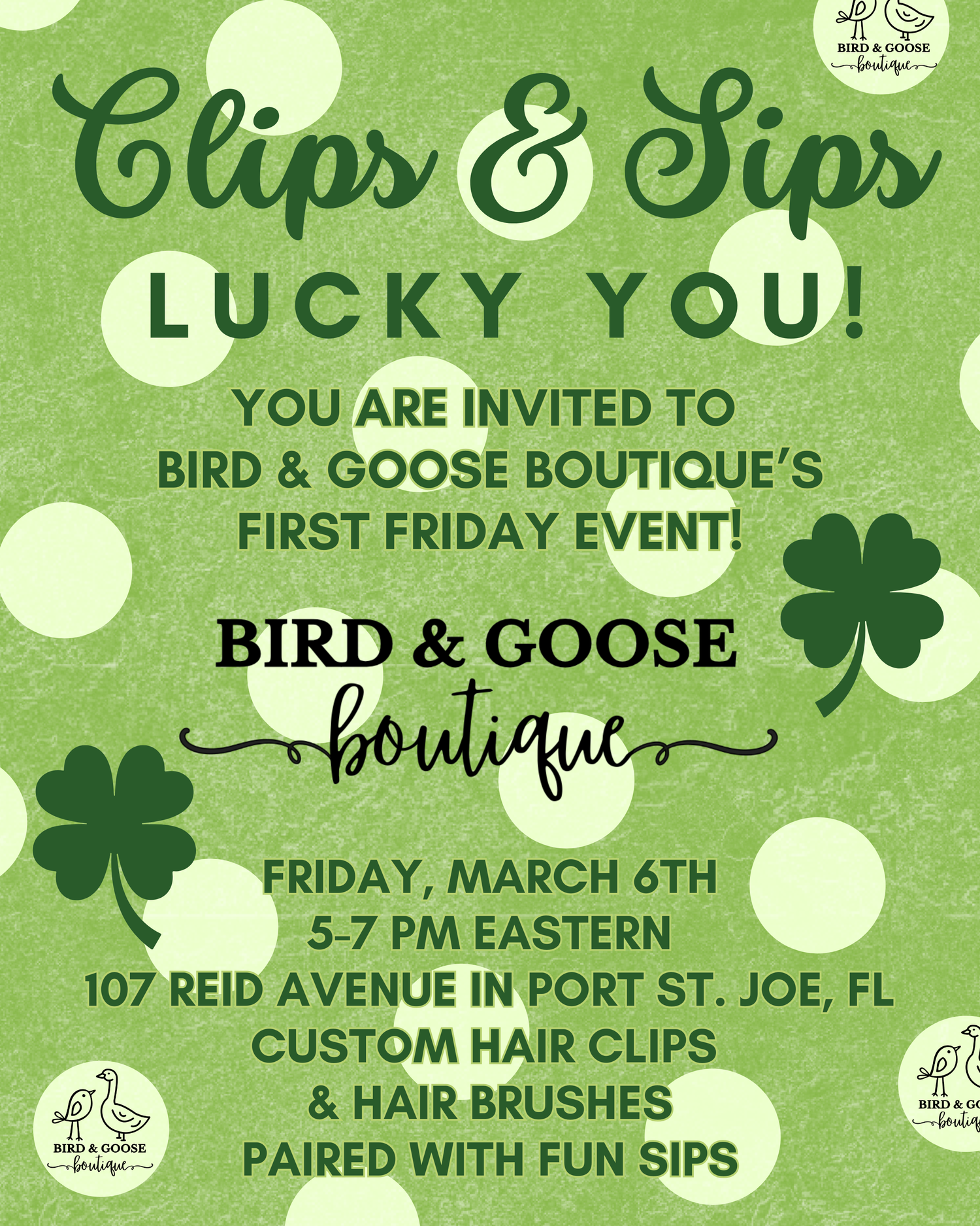 March 6th: First Friday: Clips & Sips from 5-7 PM